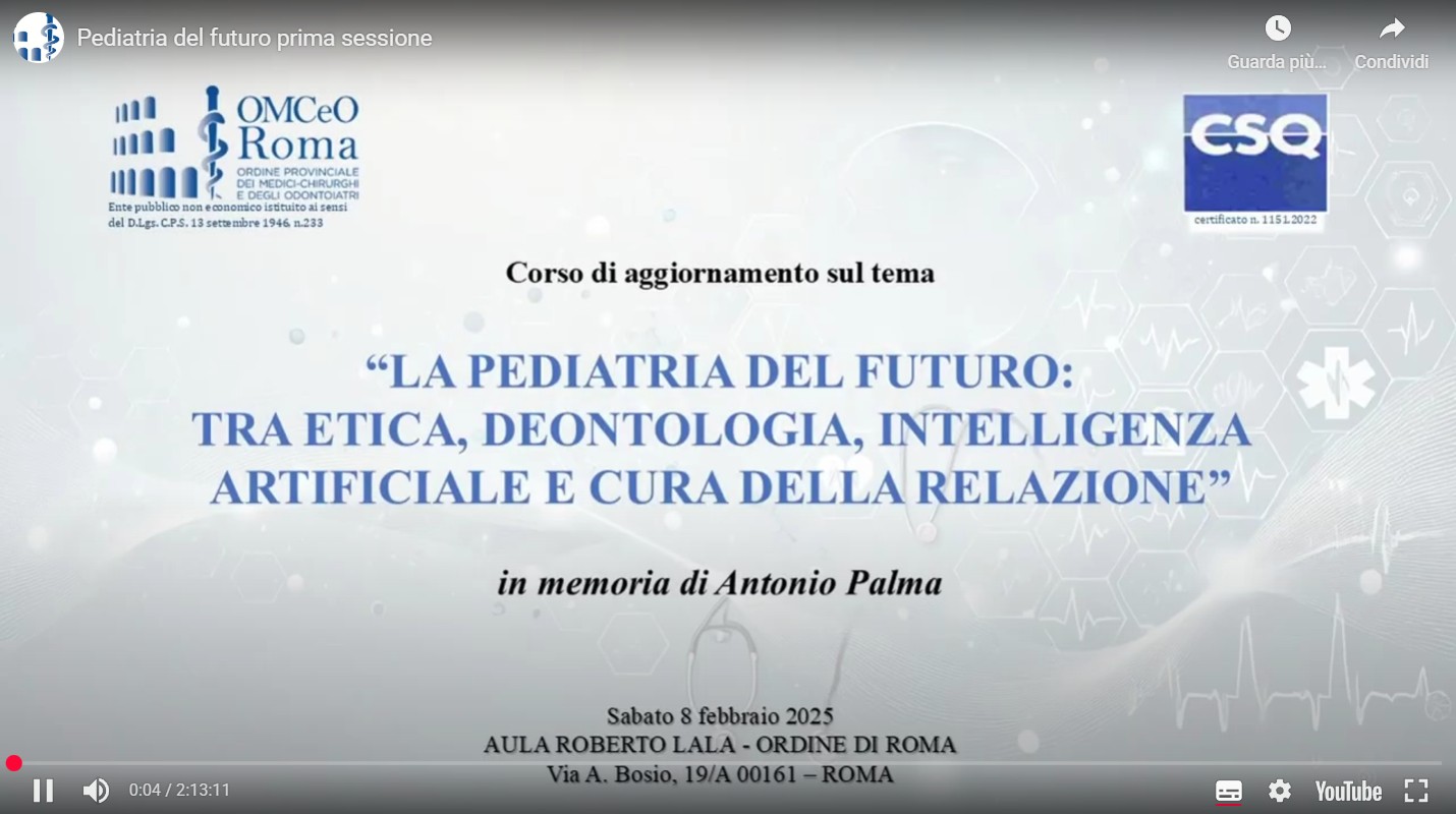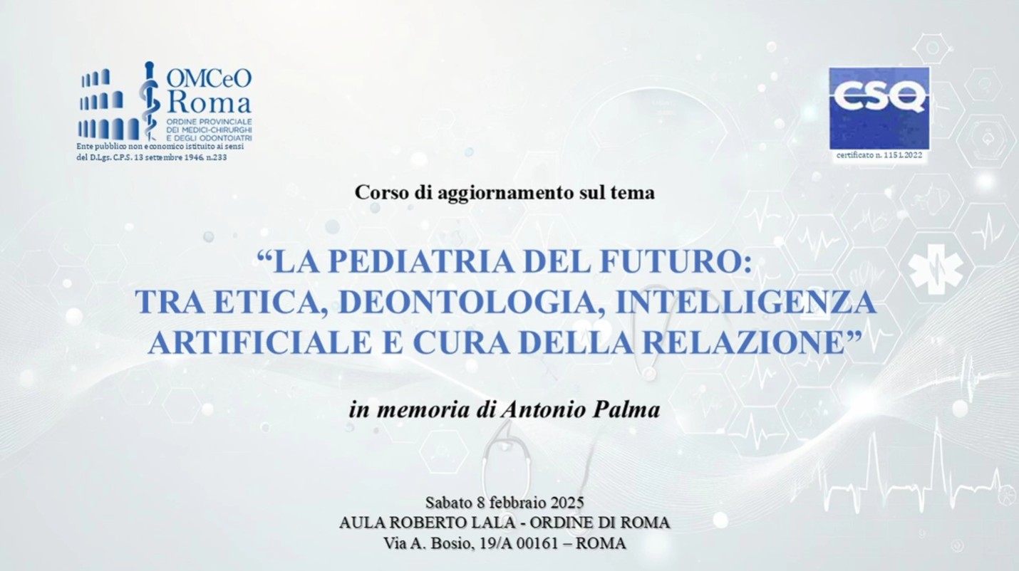 LA PEDIATRIA DEL FUTURO TRA ETICA, DEONTOLOGIA, INTELLIGENZA ARTIFICIALE E CURA DELLA RELAZIONE - 2025
