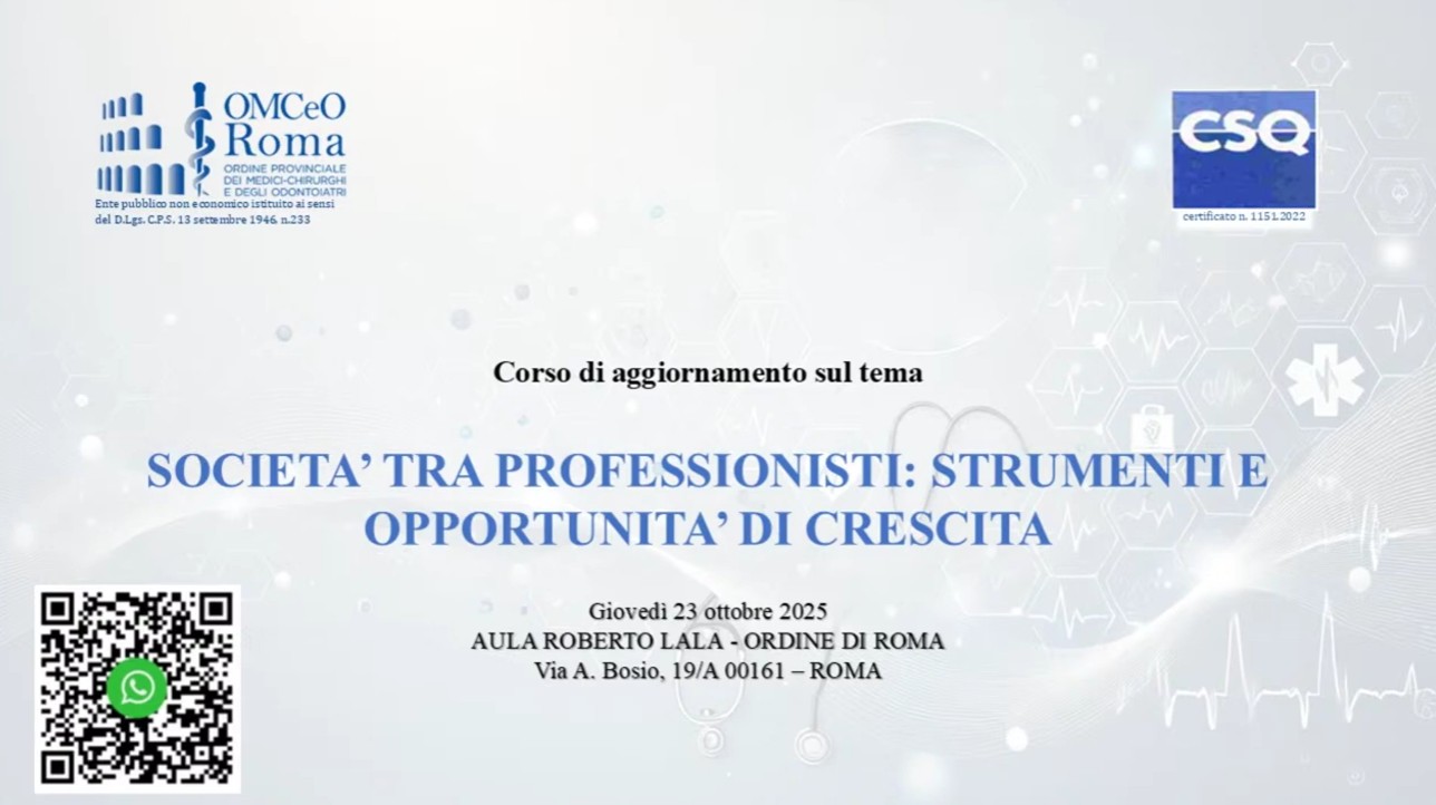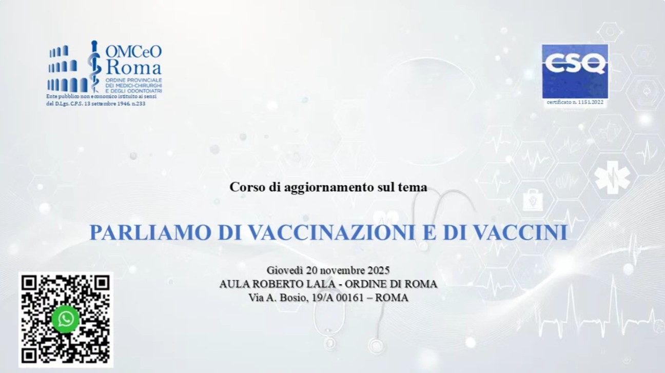 Il Corso si è tenuto presso l'Aula Roberto Lala - OMCeO Roma, il 20 novembre 2025